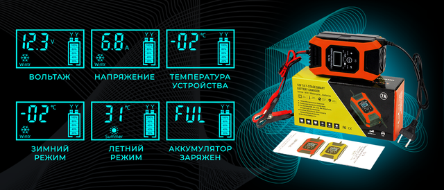 * Режим восстановления (ремонта) с десульфатацией АКБ, что позволяет восстановить работоспособность АКБ даже после долгого простоя.