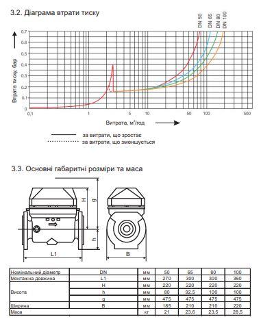 | Мінімальна витрата, Qmin | 0.3 куб.м/год |