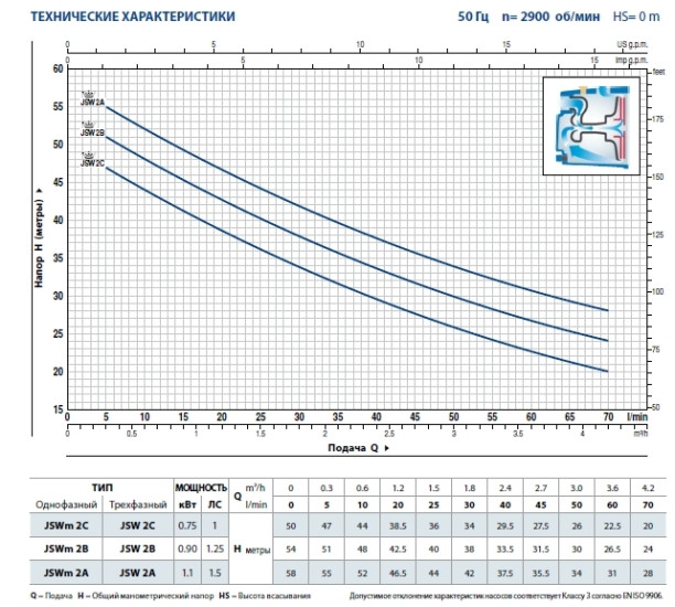 КРАТКА ТЕХНІЧНА ХАРАКТЕРИСТИКА НАСОСУ СЕРІЇ PEDROLLO JSW2: